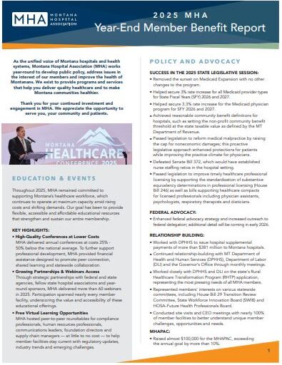 The Montana Hospital Association supports the analysis of the programs, policies and issues impacting Montana healthcare providers.